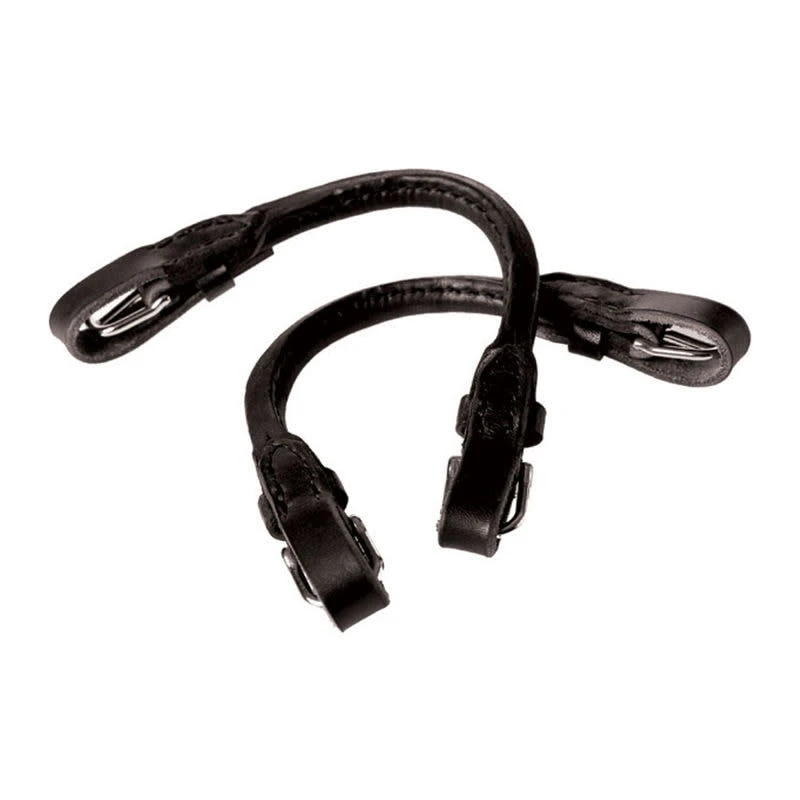Just buckle these round leather straps to the snaffle and curb rings of the pelham bit and then attach the rein to the resulting loop. This provides greater control, but restricts uneven pressure on the curb or snaffle rein. Particularly useful for horses who require a stronger bit, but need a lighter pressure on the curb. Available in durable leather with stainless steel fittings.