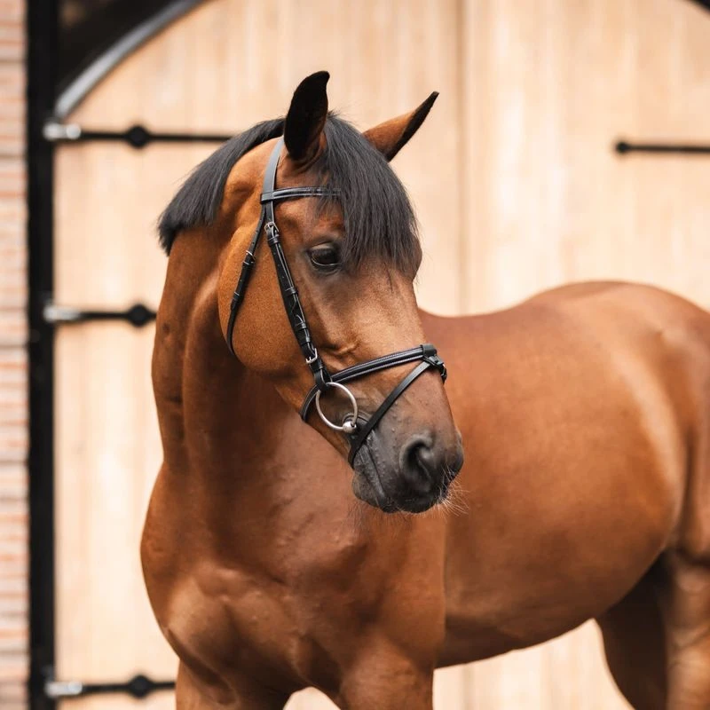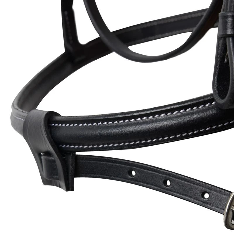 This bridle features a detachable flash strap, allowing you to customize the bridle based on your horse’s needs. The soft padding at the poll and browband ensures optimal comfort and prevents rubbing. The simple headpiece design provides a clean and elegant look. The contrast stitching adds a touch of sophistication to the overall design. The shaped browband with a logo pin adds a subtle yet eye-catching detail.