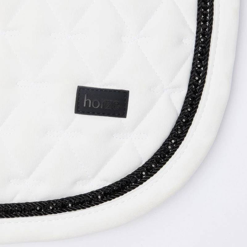 The Horze Noir Saddle Pad is designed with a soft polyester outer featuring elegant diamond quilting to relieve pressure beneath the saddle. Waffle lining wicks away any moisture with straps that attach easily to your saddle. Two rows of pretty cord and a row of shiny pearls around the edges add a touch of luxury to this all-purpose saddle pad. Combine it with the rest of the Horze Noir line for a full look.