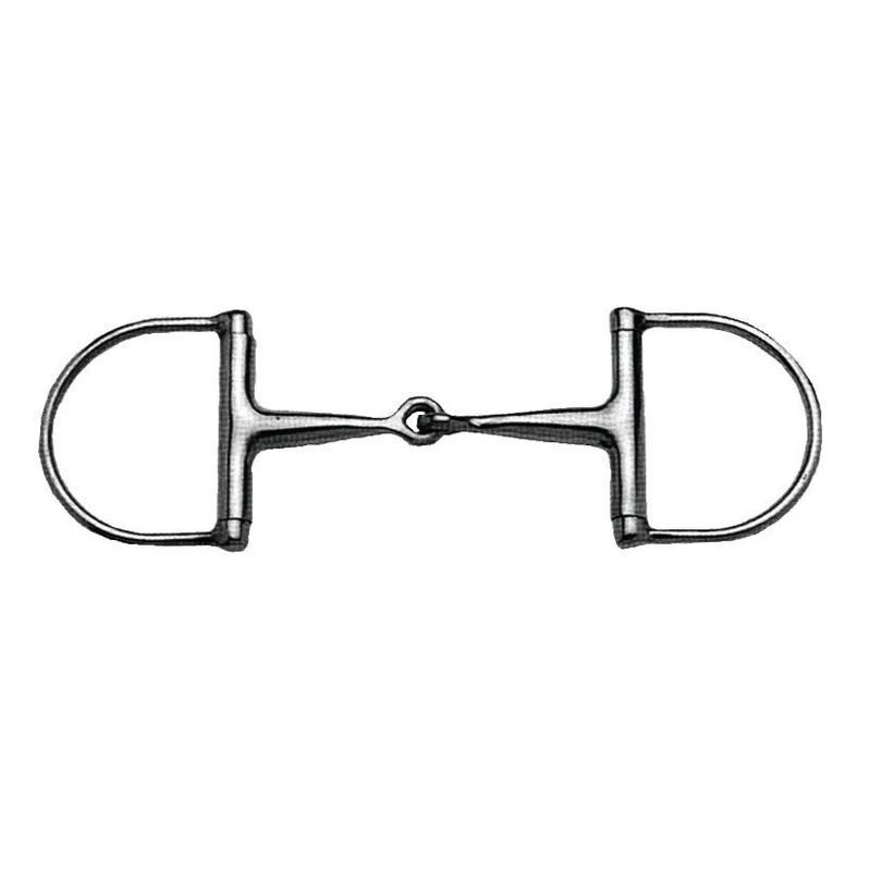 Dee ring compromises between an eggbutt and a full cheek snaffle, preventing pinching at the corners of the mouth and without the dangers posed by the arms of a full cheek snaffle. The single joint mouth creates a nutcracker action when pressure is applied.
