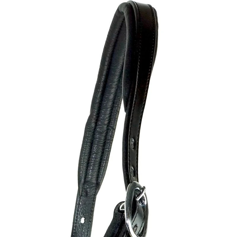 This halter has a Wonderful fit as well as an easy on and off. Padded. Throat snap. Adjustable chin. Premium leather with stainless hardware.