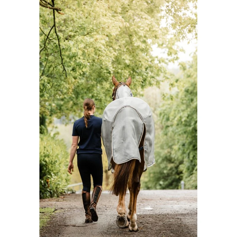 Made from unique, patented, and durable self-repairing fabric, this fly sheet offers UV protection and is designed to last. Features include a close contact hood with an improved fit and extended chest coverage, V-Front closure that allows your horse to graze comfortably, extra-depth to the knee for added protection, dual leg arches, and three straight surcingles for maximum coverage.